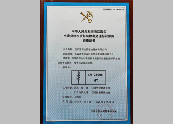 公司廠房占地20余畝,擁有專業機械設備30套,專業技術人員50余名。擁有一套現代化的能效高、效果好的熱處理窯,能較好的完成木材的干燥及有害生物的殺滅,已于2007年獲得出境木質包裝標識加施資格,是連云港海關指定定點木包裝熱處理單位。經我公司加工出口的木質包裝年產量20萬套以上,產值1600萬余元。目前是連云港區域同行業規模及產能最大的專業生產廠家。